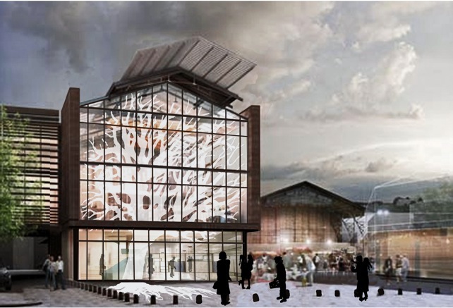 Le projet architectural inspiré de l’ancienne Halle conférant à la façade principale une dimension intemporelle, j’ai orienté ma réflexion sur un triple lien : intérieur et extérieur, passé et avenir, culture et pratiques individuelles et collectives.