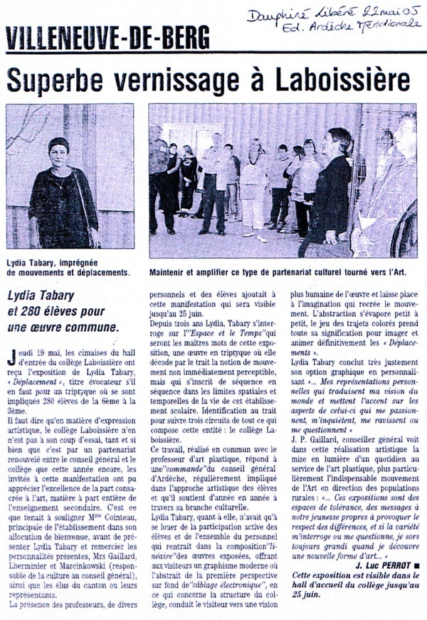 LYDIA TABARY REALISATION pour le collège de VILLENEUVE-DE-BERG (07) - 2005