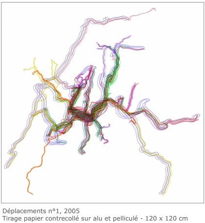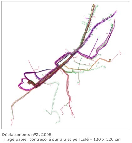 Déplacements , création conceptuelle réalisée pour le collège de Villeneuve-de-Berg (Ardèche) - 2005